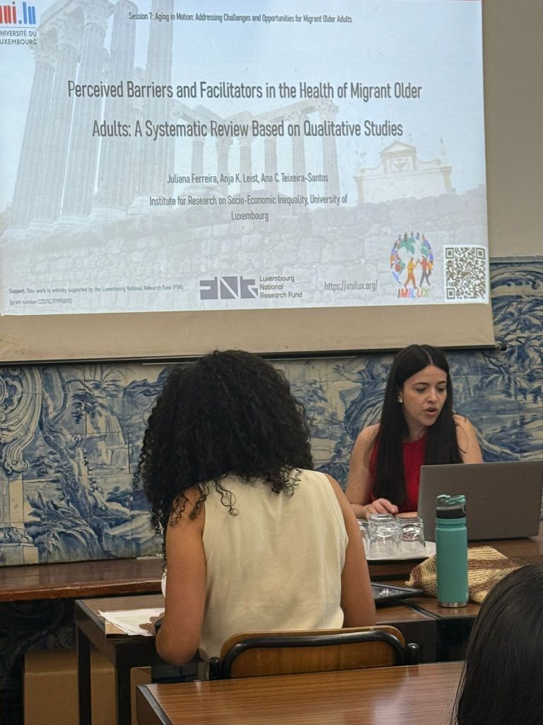 Dr. Ana Carolina Teixeira-Santos served as the convenor and chair of Session 9: Aging in Motion – Addressing Challenges and Opportunities for Migrant Older Adults. During this session, Dr. Juliana Ferreira presented a research work entitled “Perceived Barriers and Facilitators in the Health of Migrant Older Adults: A Systematic Review Based on Interviews”, co-authored by Anja K. Leist, and Ana C. Teixeira-Santos.